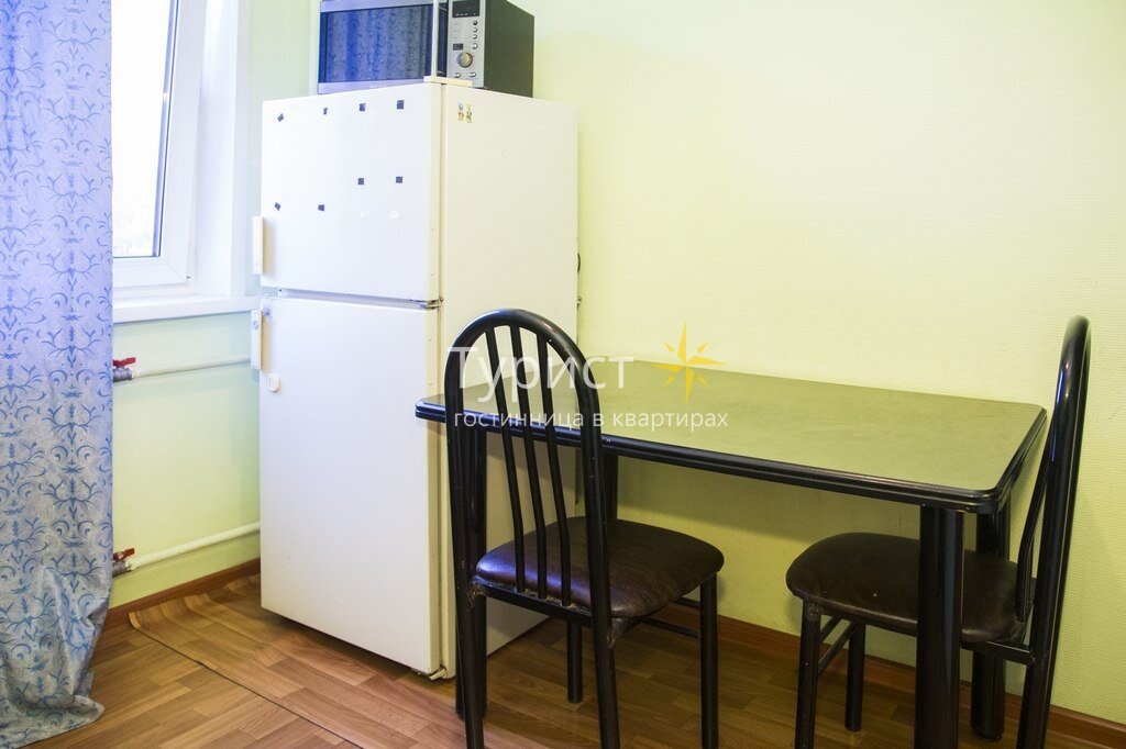 Кухонный гарнитур особенно напоминает домашний уют. Шкафчики с посудой и столовыми приборами, обеденный стол и удобные стулья, из бытовых электроприборов – холодильник, печь СВЧ и стиральная машина. Совмещенный санузел оборудован новыми приборами сантехники.